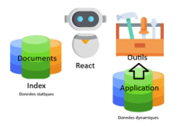 Construire notre application sur un algorithme ReAct (donc un LLM capable de fonctions) accédant à :
